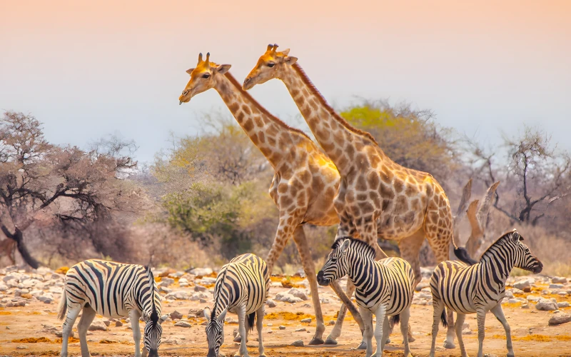 • Etosha National Park: Big 4 sightings, full-day game drives, waterhole evenings.